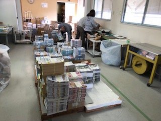 本日、弊社発行宅配情報紙PIPO新年号が納品されました。今日は、リーダーさんが仕分け作業、あすから配布が始まります!