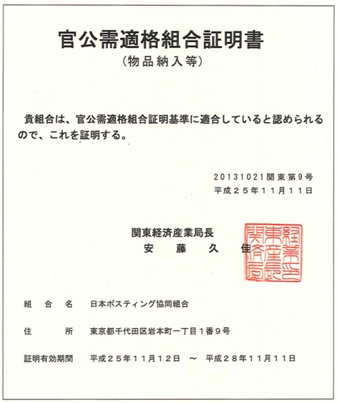 日本ポスティング(協)が官公需適格組合に認定されました