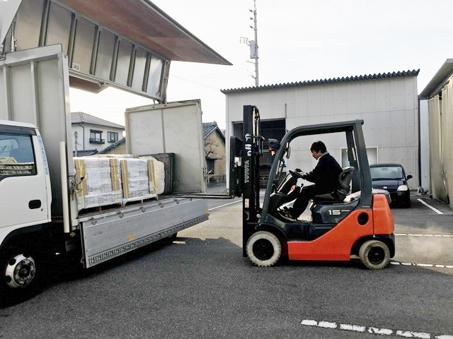 倉庫も広くなり、リフトももちろん!電子計量器と結束機が並び、 快適に作業がすすみます!
